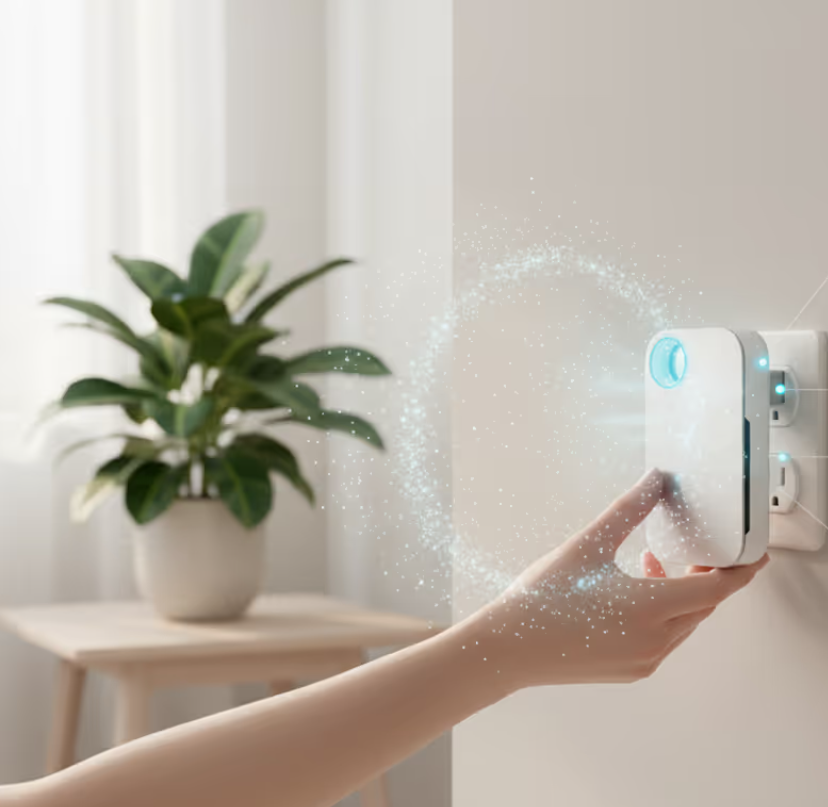 Simply plug into any standard outlet and breathe easier instantly. Unlike traditional purifiers, there are no expensive filters to replace or maintain. Set it and forget it.